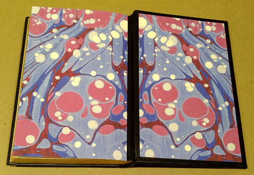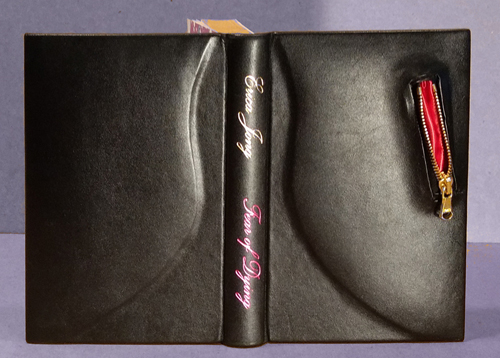 Calf, 22K gold and metallic pink title on spine, sculpted, padded boards with zipper and peau de soie.