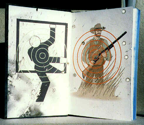 Seven books on the American Militia movement, the right to bear arms, and the gun culture, in a snakeskin cabinet with a Norinco MAK-90 semi-automatic rifle, three loaded clips, and a thousand rounds of ammunition. Created 1996-98, this work is part of Minsky's series The United States Constitution, The Bill of Rights, and is subtitled The Second Amendment. Click on the image to return to the main Second Amendment page.