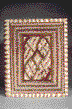 Red Nigerian Goatskin with inlay and onlay panels of a geometric design in both covers.