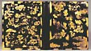 Album of hand-colored albumen prints. There are 35 layers of clear finishes, paint and gold leaf that create an optical effect of extraordinary depth. The photo above does not capture the subtle colors in the "black" areas, nor the illusionistic depth created by the light passing through many layers that refract it differently.