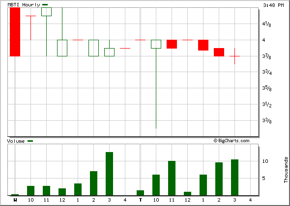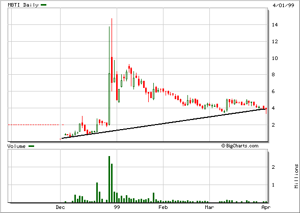 What happens when the daytraders hit a stock? Take a look at the chart for MBTI [figure 2].